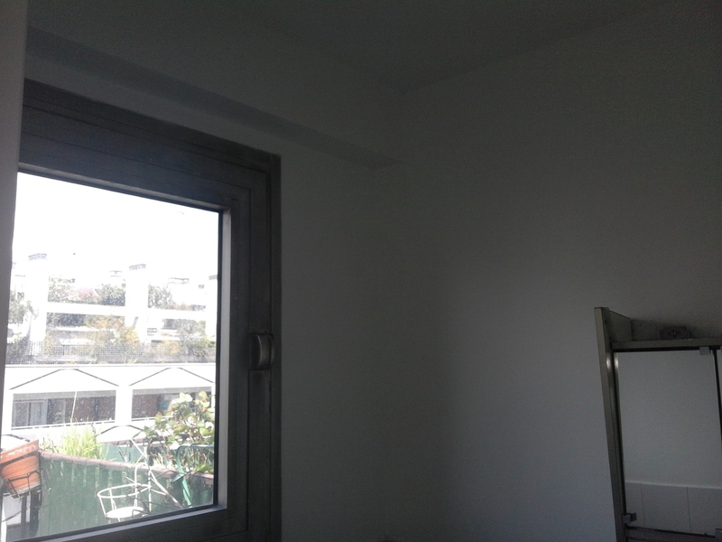 Travaux de finition : deux couches de peinture acrylique satinée blanche. Repli du matériel, nettoyage de fin de chantier.