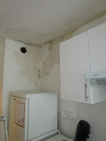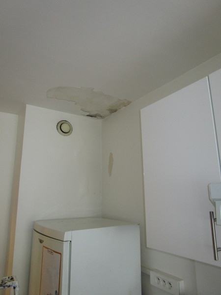 Rénovation d'une cuisine après dégât des eaux (plafond et deux murs). Paris 13ème.