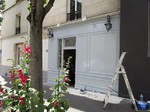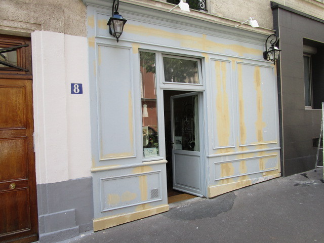 Ci-dessous : travaux de rénovation des peintures sur panneaux de bois : boutique à Paris 13ème rue du moulin des près.