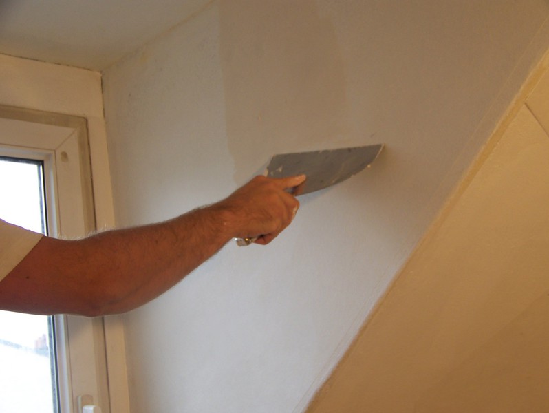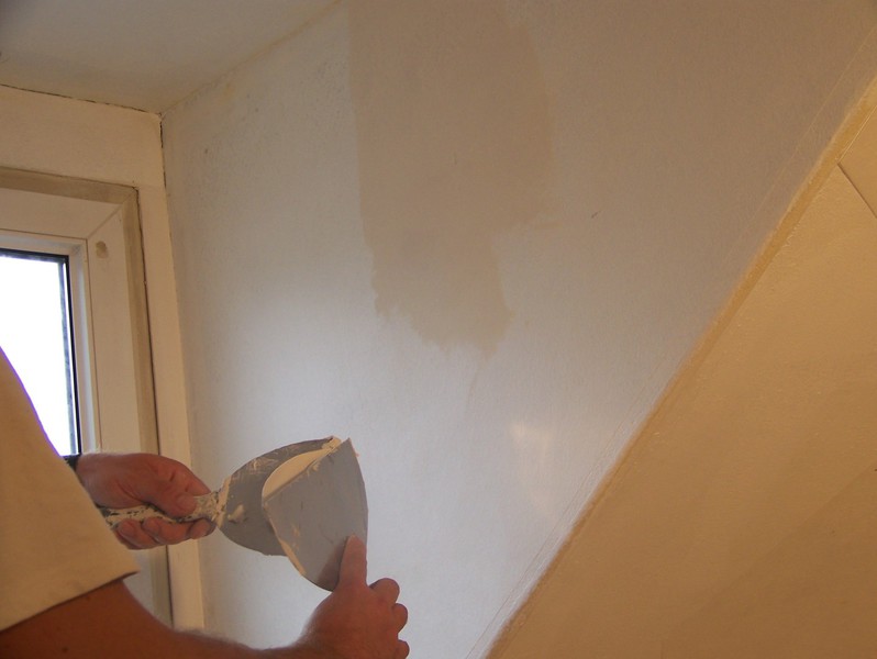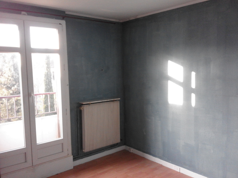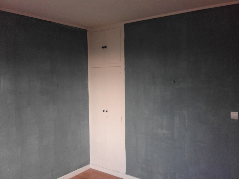 Ci-dessous : Rénovation d'une chambre au Kremlin Bicêtre. Arrachage de l'ancienne toile de verre, sous-couche d'impression, une couche d'enduit, finition.